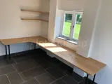 A great use of Interclamp key clamp self-colour fittings and powder-coated tube to create this bespoke oak office desk.